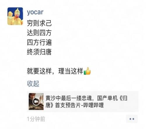引人注目的是,同为国产单机游戏人,《黑神话:悟空》制作人冯骥在朋友圈转发了《归唐》的宣传PV,并以充满力量的文字表达了支持:“穷则求己,达则四方。四方行遍,终须归唐。就要这样,理当这样”。